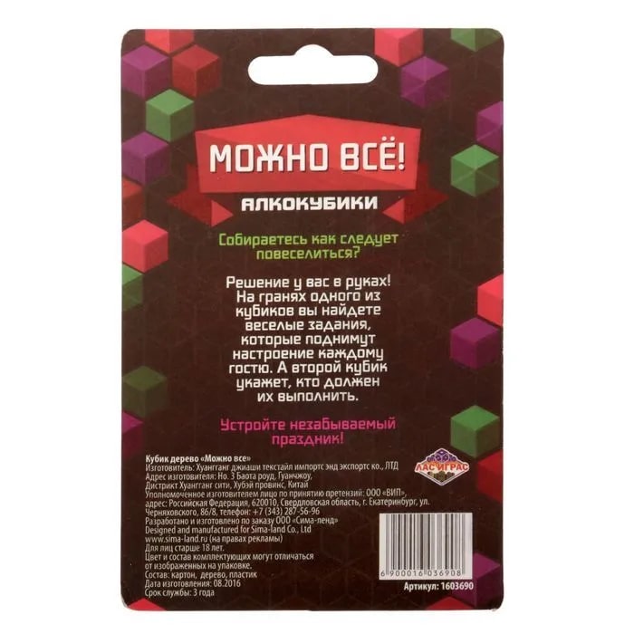 Купить кубик "можно все", алкокубики для принятия решений от 60 руб. с доставкой до пункта выдачи в Городище. Интернет магазин ДекаМаркет. Оплата при получении.